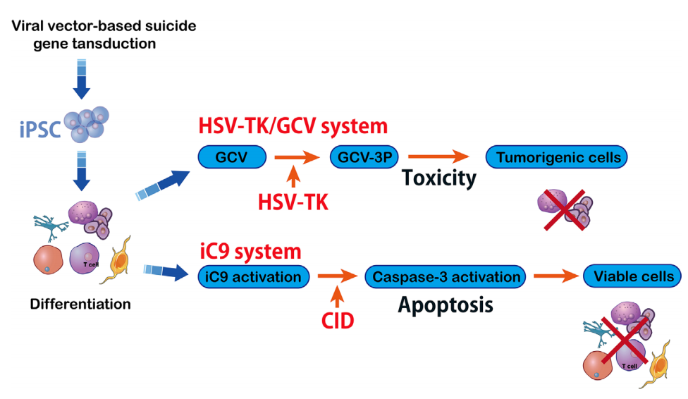 基于工程化T细胞的安全开关机制是一种有吸引力的策略。来源于单纯疱疹病毒Ⅰ型(HSV-TK)的胸苷激酶基因是最常见的自杀基因之一。