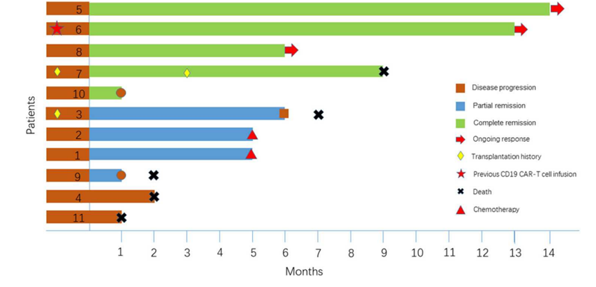 图7:在ASCT注入后联合CD19 CAR-T并用来那度胺维持的治疗效果