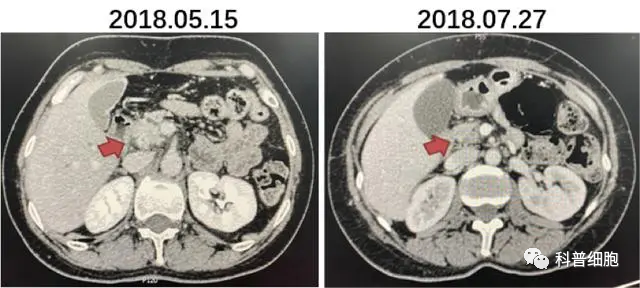 03 治疗开始 很快徐女士便开始了治疗,专家通过提取徐女士血液中的单核细胞,通过培植、激活,将其制成“定制型免疫疫苗”后,以静脉注射的方式注射到体内,令徐女士意外整个治疗过程并没有一丝不适,术后也没有任何副作用,反而感觉身体越来越好。 治疗结束后,通过复查显示肿瘤缩小了大半,CA19-9降低到了55。后经过医生评估,考虑到肿瘤已经缩小,同时徐女士的身体恢复明显,因此决定行胰十二指肠切除+胰腺周围神经切除+门静脉修补术。