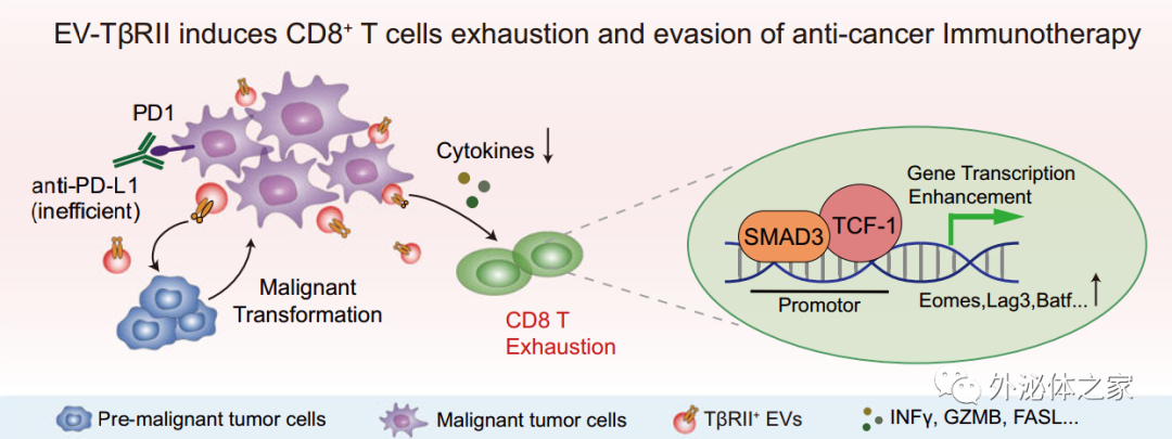 8.苏大周芳芳&浙大张龙合作:乳腺癌细胞衍生的细胞外囊泡通过TGF-β II型受体信号传导促进CD8(+) T细胞耗竭