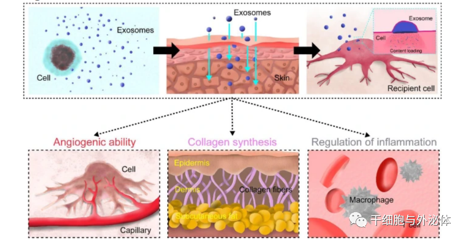 外泌体具有多种有益于皮肤组织再生的能力:(1)血管生成能力,(2)胶原蛋白合成,以及(3)炎症调节。使用外泌体作为成分,可以克服目前皮肤治疗的局限性。此外,这些迷人的生物材料可以整合到癌症治疗和疫苗等各个领域。希望外泌体能在不久的将来为治疗各种疾病和癌症提供一个新的平台。